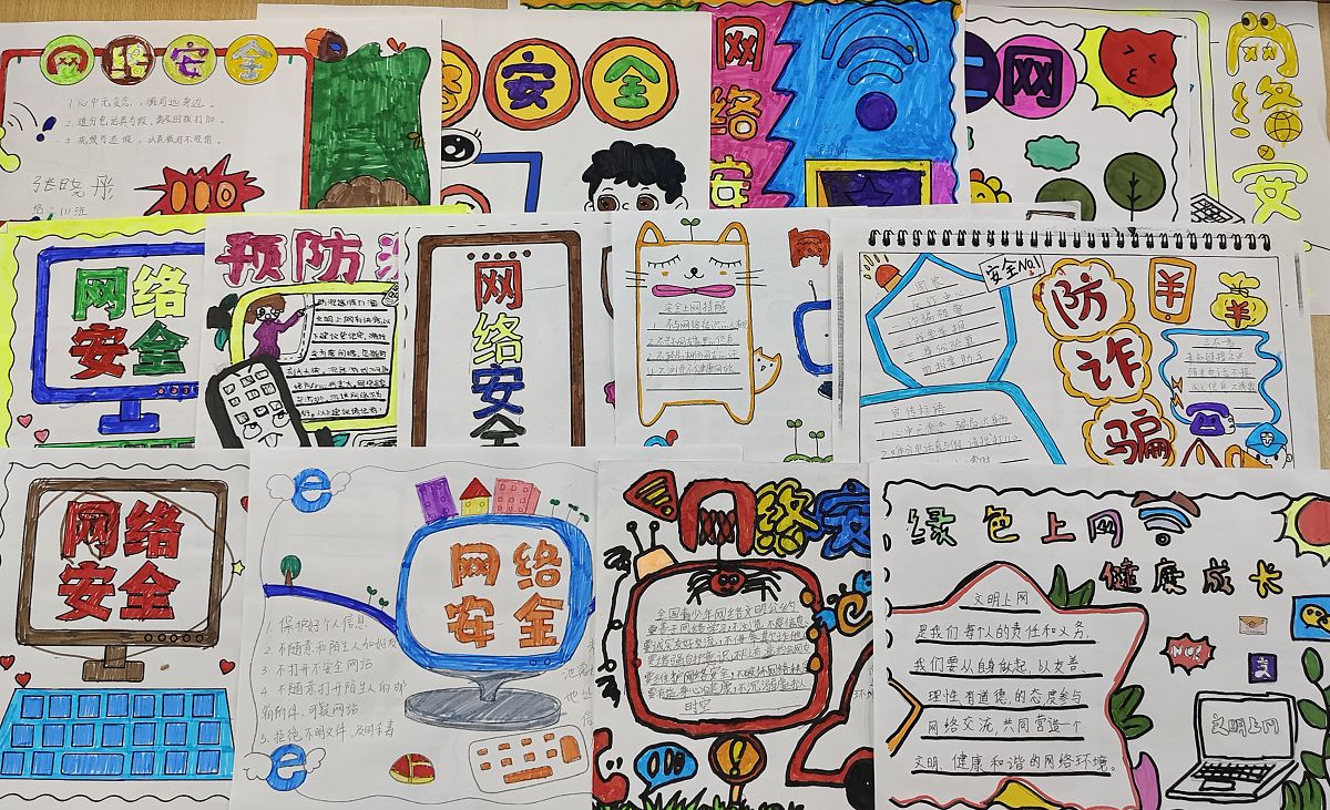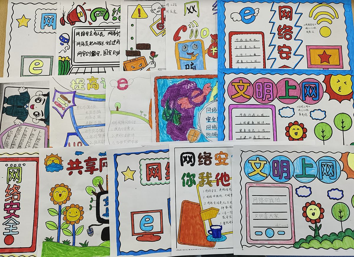 此外,学生们还发挥自己的创造力,绘制宣传画。一幅幅色彩斑斓的画作,以形象的方式传达出网络安全的理念。