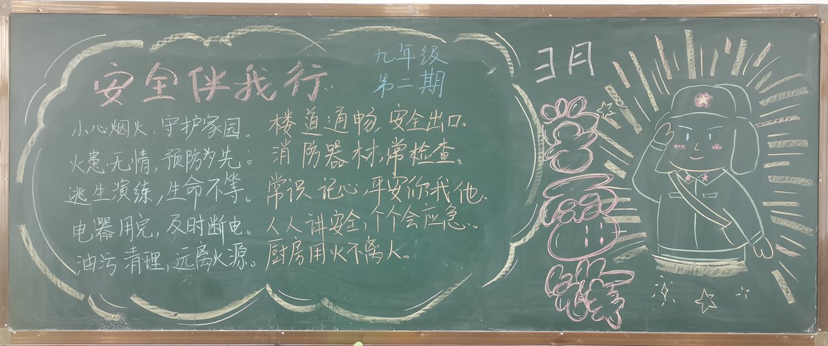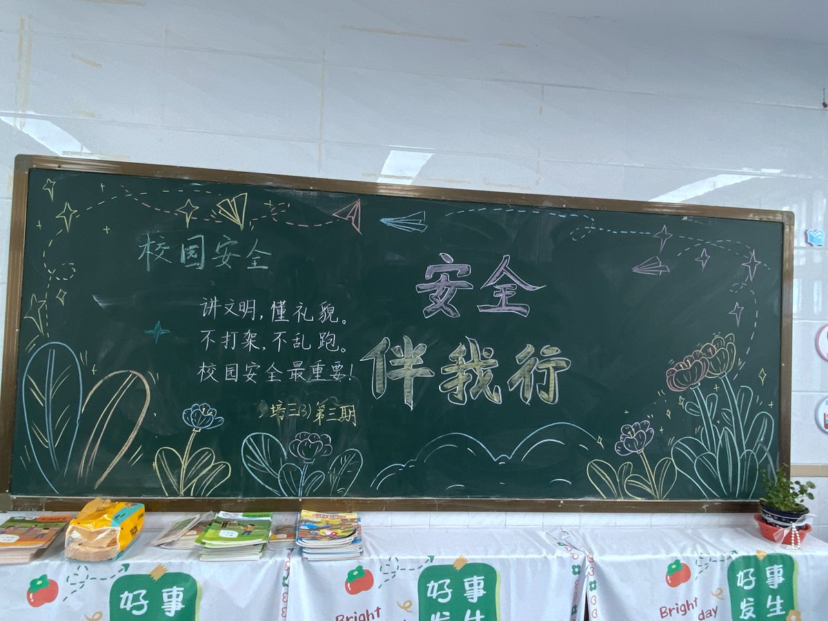 各班积极行动,精心绘制安全教育主题黑板报。同学们在老师的指导下,用手中的画笔描绘出对安全的理解和认识。色彩鲜艳的图案、简洁易懂的文字,涵盖交通安全、校园活动安全等多个方面。黑板报不仅美化了教室环境,更成为学生学习安全知识的重要宣传阵地,时刻提醒着学生注意安全。