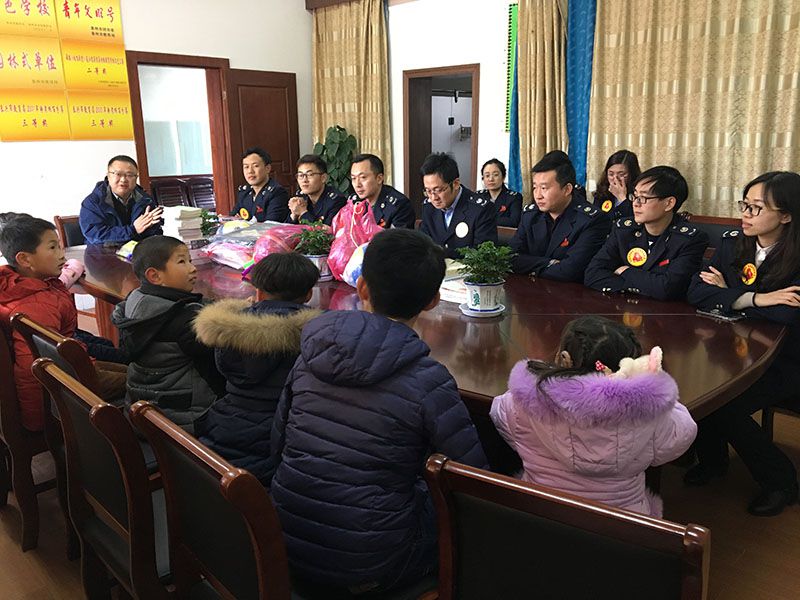 我校学生有不同程度上的障碍,也因此国税局才选择来我校慰问这些学生。他们带来了铅笔、本子、文具盒、书包等学习用品,以及排球、跳绳等体育器材。另外,来我校的11人每人都向我校学生捐赠了100元,共计1100元,尽他们之力最大程度的给予我校学生的帮助。