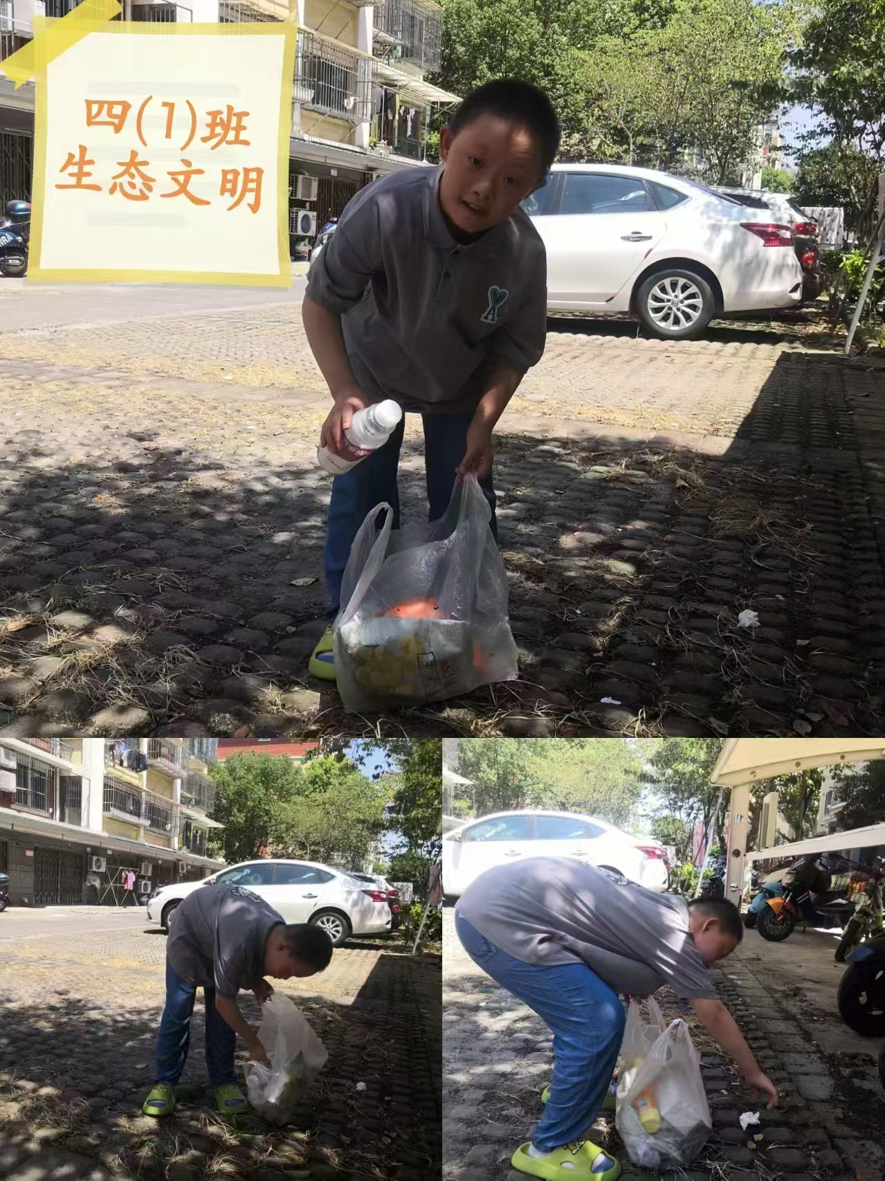 生态文明教育中,有的学生观看宣传片,有的在小区里清理垃圾,为保护环境贡献自己的力量。