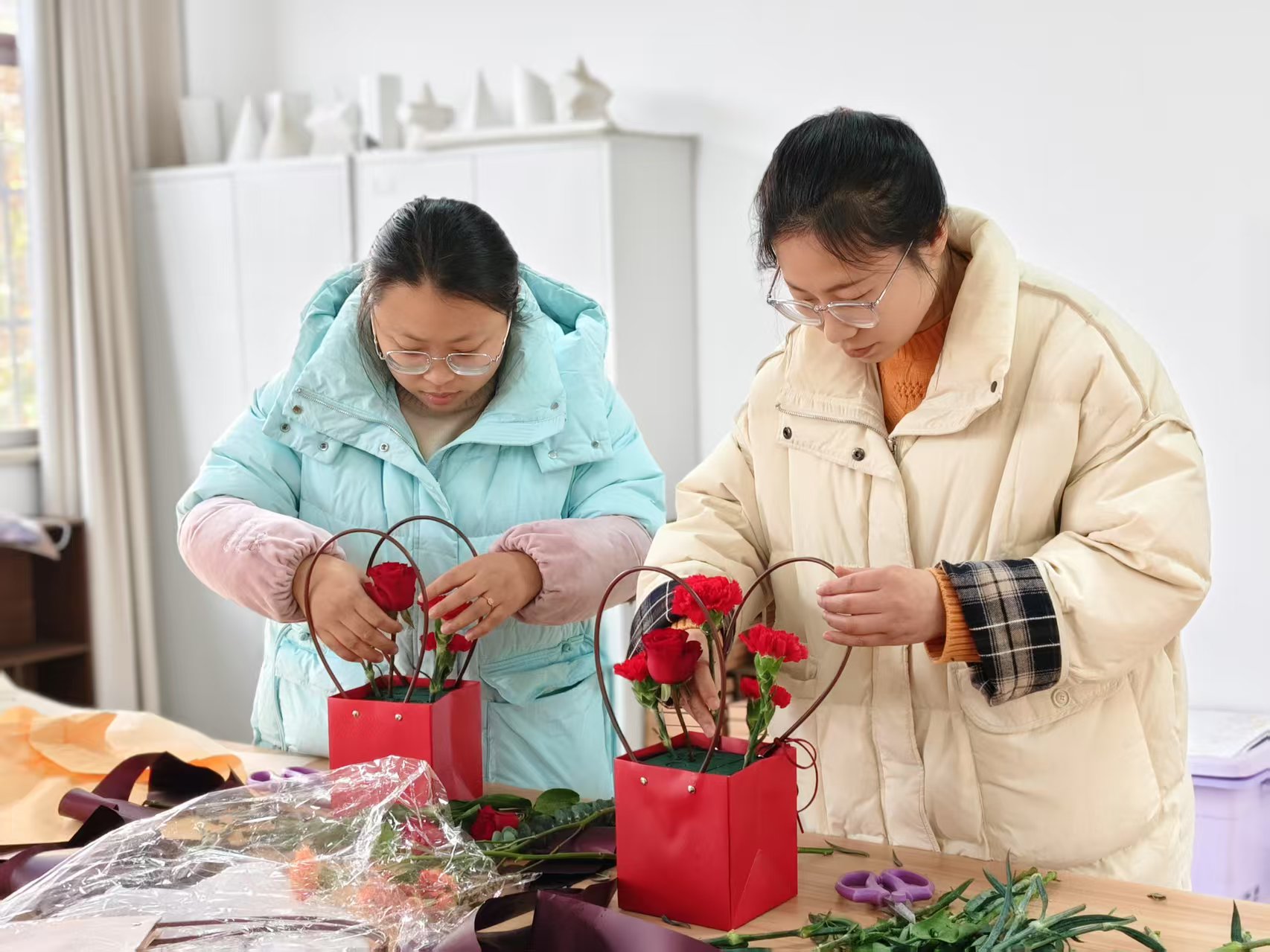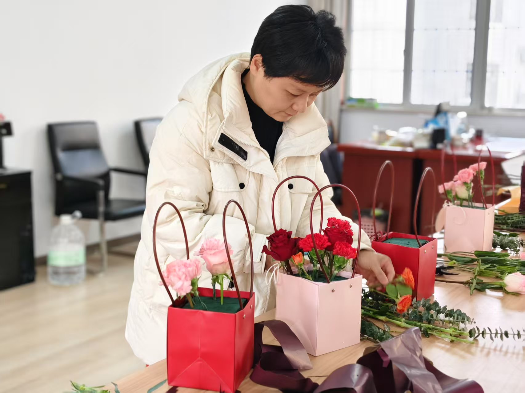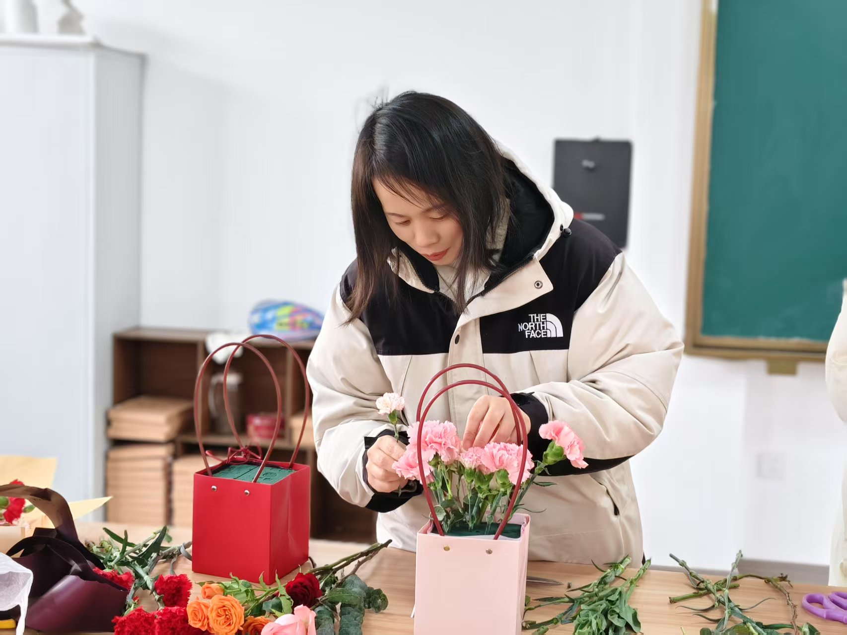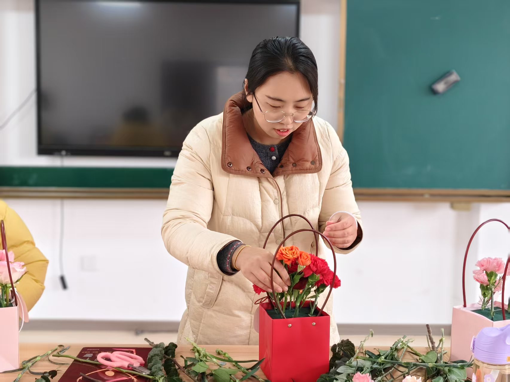 插花活动同样精彩。女教师们手持花枝,精心搭配,专注又认真。在花香四溢中,一盆盆独具匠心的插花作品诞生,它们是教师们对美的追求,对生活的热爱。